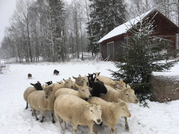 Fåren hos oss hanteras i första hand av hundarna. Jag har ett 50-tal tackor som är korsning mellan texel/suffolk. Men jag har ett samarbete med goda vänner och grannar där jag är med i deras besättning och tillsammans har vi ca 230 tackor som lammar samt ungtackor som går utan lamm första året. De djuren används till kurser och privatlektioner.