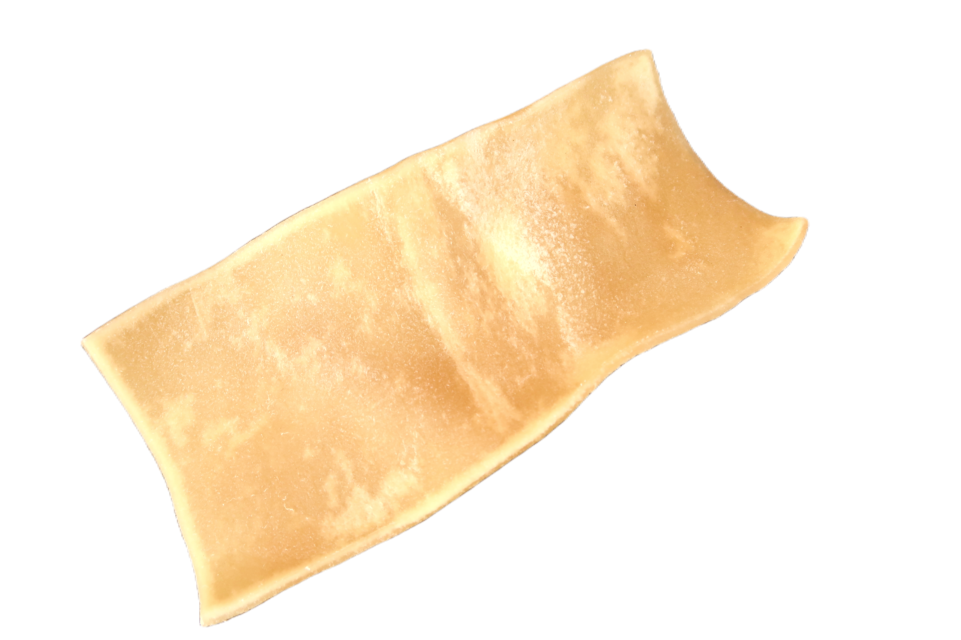 Tuggbitar av torkad råhud från Nöt. Passar hundar som ej vill ha tjocka tuggben